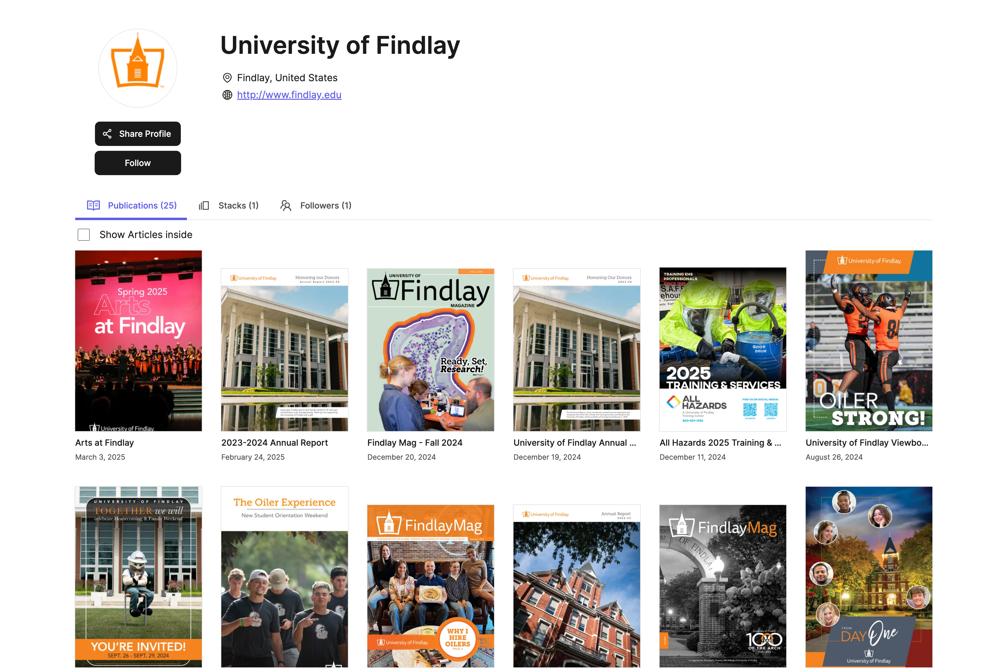 Findlay Mag is the University of Findlay's official publication. It served as a bi-annual magazine for students, alumni, and parents. This magazine maintained community connection by delivering stories about university events, alumni achievements, campus news, and historical or research-related content. Distributed in print and online, it aimed to keep its audience informed and engaged with the university's activities and developments.